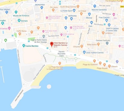 The Hotel Barriere Le Majestic in Cannes is located on the Croisette.
